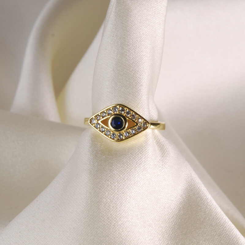 Gold Mavi Taş Gözlü Serçe Parmak Yüzüğü